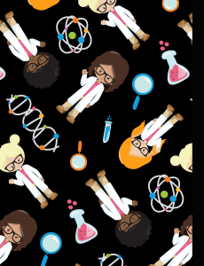 - Girl scientists and other science imagery decorate front and back covers